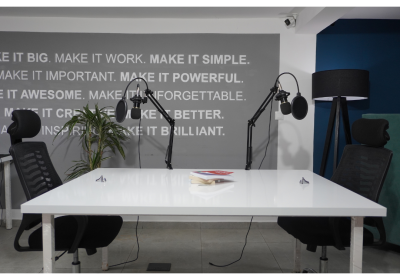 Enregistrez vos podcasts et contenus audio dans un studio professionnel avec isolation acoustique.